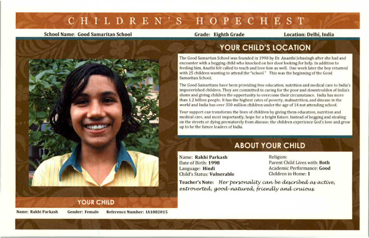 Updating my blog allows me to introduce you to some of the 8th grade girls from The Good Samaritan School that still need sponsors. Some of you may remember that I visited India in June 2010. In case you don't, you can read about it here. I implore you to consider taking $34 a month and giving it to a child at risk in New Delhi, India. These girls have very little hope without an education and to receive and education they need sponsors. I am posting all of their photos and information in the hopes that some of you will choose to become sponsors. Please consider this life changing opportunity.